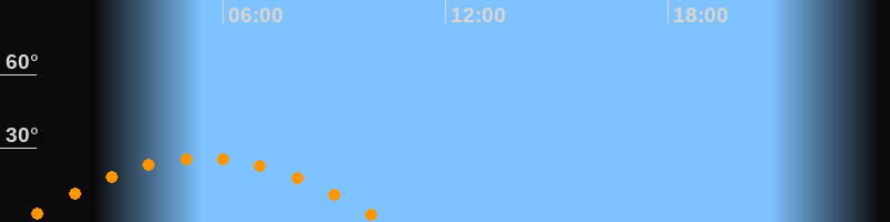 Daten und Fakten: NGC6822 (IC 4895, PGC 63616) Rektaszension 19h 44m 56s Deklination -14° 47' 21'' Helligkeit 8,7 mag (14,4 mag/arcmin^2) Scheinbare Ausdehnung 15,5' x 13,5' Entfernung ca. 1,6 Mio ly Ausdehnung 6000 ly Sichtbarkeit in Zwickau 14.05.2023 Aufgang 00:28 Uhr im Osten (αAz = 110,4°) Höchster Stand (Kulmination) 05:28 Uhr (h = 26,1°) Untergang 10:24 Uhr im Westen (αAz = 249,6°) Standort: Zwickau, Algorithmen siehe Credits