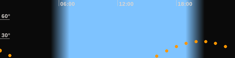 Daten und Fakten: NGC6822 (IC 4895, PGC 63616) Rektaszension 19h 44m 56s Deklination -14° 47' 21'' Helligkeit 8,7 mag (14,4 mag/arcmin^2) Scheinbare Ausdehnung 15,5' x 13,5' Entfernung ca. 1,6 Mio ly Ausdehnung 6000 ly Sichtbarkeit in Zwickau 26.09.2024 Aufgang 15:34 Uhr im Osten (αAz = 110,4°) Höchster Stand (Kulmination) 20:30 Uhr (h = 26,1°) Untergang 01:27 Uhr im Westen (αAz = 249,6°) Standort: Zwickau, Algorithmen siehe Credits