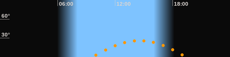 Daten und Fakten: NGC6822 (IC 4895, PGC 63616) Rektaszension 19h 44m 56s Deklination -14° 47' 21'' Helligkeit 8,7 mag (14,4 mag/arcmin^2) Scheinbare Ausdehnung 15,5' x 13,5' Entfernung ca. 1,6 Mio ly Ausdehnung 6000 ly Sichtbarkeit in Zwickau 11.12.2024 Aufgang 09:35 Uhr im Osten (αAz = 110,4°) Höchster Stand (Kulmination) 14:31 Uhr (h = 26,1°) Untergang 19:28 Uhr im Westen (αAz = 249,6°) Standort: Zwickau, Algorithmen siehe Credits