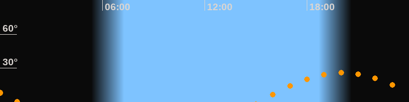 Daten und Fakten: NGC6822 (IC 4895, PGC 63616) Rektaszension 19h 44m 56s Deklination -14° 47' 21'' Helligkeit 8,7 mag (14,4 mag/arcmin^2) Scheinbare Ausdehnung 15,5' x 13,5' Entfernung ca. 1,6 Mio ly Ausdehnung 6000 ly Sichtbarkeit in Zwickau 03.10.2026 Aufgang 15:08 Uhr im Osten (αAz = 110,4°) Höchster Stand (Kulmination) 20:05 Uhr (h = 26,1°) Untergang 01:01 Uhr im Westen (αAz = 249,6°) Standort: Zwickau, Algorithmen siehe Credits