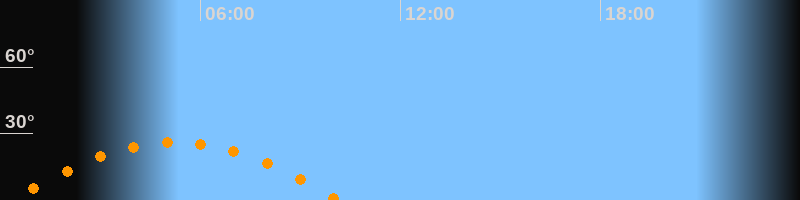 Daten und Fakten: NGC6822 (IC 4895, PGC 63616) Rektaszension 19h 44m 56s Deklination -14° 47' 21'' Helligkeit 8,7 mag (14,4 mag/arcmin^2) Scheinbare Ausdehnung 15,5' x 13,5' Entfernung ca. 1,6 Mio ly Ausdehnung 6000 ly Sichtbarkeit in Zwickau 17.05.2029 Aufgang 00:14 Uhr im Osten (αAz = 110,4°) Höchster Stand (Kulmination) 05:14 Uhr (h = 26,1°) Untergang 10:10 Uhr im Westen (αAz = 249,6°) Standort: Zwickau, Algorithmen siehe Credits
