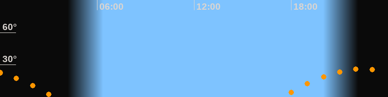 Daten und Fakten: NGC6822 (IC 4895, PGC 63616) Rektaszension 19h 44m 56s Deklination -14° 47' 21'' Helligkeit 8,7 mag (14,4 mag/arcmin^2) Scheinbare Ausdehnung 15,5' x 13,5' Entfernung ca. 1,6 Mio ly Ausdehnung 6000 ly Sichtbarkeit in Zwickau 29.08.2029 Aufgang 17:25 Uhr im Osten (αAz = 110,4°) Höchster Stand (Kulmination) 22:21 Uhr (h = 26,1°) Untergang 03:21 Uhr im Westen (αAz = 249,6°) Standort: Zwickau, Algorithmen siehe Credits