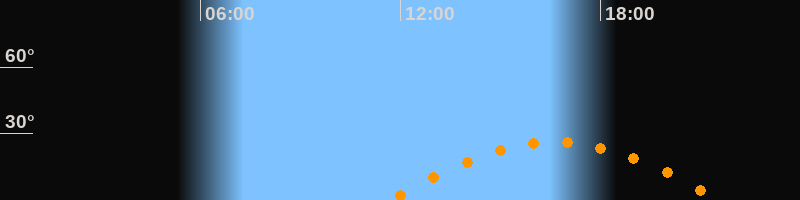 Daten und Fakten: NGC6822 (IC 4895, PGC 63616) Rektaszension 19h 44m 56s Deklination -14° 47' 21'' Helligkeit 8,7 mag (14,4 mag/arcmin^2) Scheinbare Ausdehnung 15,5' x 13,5' Entfernung ca. 1,6 Mio ly Ausdehnung 6000 ly Sichtbarkeit in Zwickau 09.11.2029 Aufgang 11:42 Uhr im Osten (αAz = 110,4°) Höchster Stand (Kulmination) 16:38 Uhr (h = 26,1°) Untergang 21:34 Uhr im Westen (αAz = 249,6°) Standort: Zwickau, Algorithmen siehe Credits