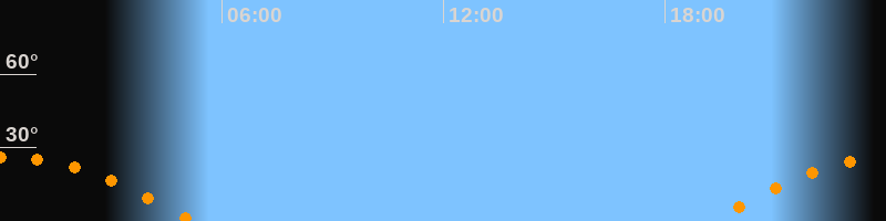 Daten und Fakten: NGC6822 (IC 4895, PGC 63616) Rektaszension 19h 44m 56s Deklination -14° 47' 21'' Helligkeit 8,7 mag (14,4 mag/arcmin^2) Scheinbare Ausdehnung 15,5' x 13,5' Entfernung ca. 1,6 Mio ly Ausdehnung 6000 ly Sichtbarkeit in Zwickau 01.08.2030 Aufgang 19:16 Uhr im Osten (αAz = 110,4°) Höchster Stand (Kulmination) 00:12 Uhr (h = 26,1°) Untergang 05:12 Uhr im Westen (αAz = 249,6°) Standort: Zwickau, Algorithmen siehe Credits