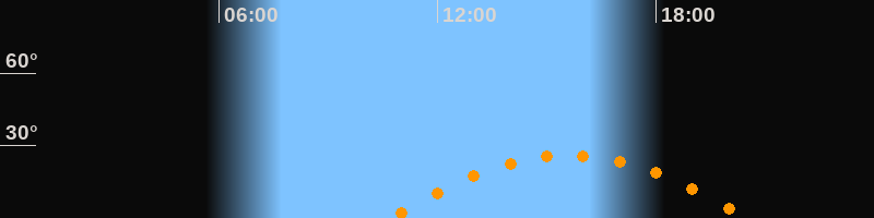 Daten und Fakten: NGC6822 (IC 4895, PGC 63616) Rektaszension 19h 44m 56s Deklination -14° 47' 21'' Helligkeit 8,7 mag (14,4 mag/arcmin^2) Scheinbare Ausdehnung 15,5' x 13,5' Entfernung ca. 1,6 Mio ly Ausdehnung 6000 ly Sichtbarkeit in Zwickau 25.11.2030 Aufgang 10:40 Uhr im Osten (αAz = 110,4°) Höchster Stand (Kulmination) 15:36 Uhr (h = 26,1°) Untergang 20:32 Uhr im Westen (αAz = 249,6°) Standort: Zwickau, Algorithmen siehe Credits