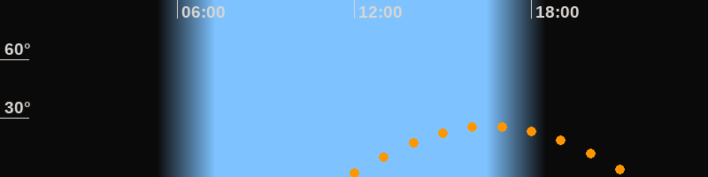 Daten und Fakten: NGC6822 (IC 4895, PGC 63616) Rektaszension 19h 44m 56s Deklination -14° 47' 21'' Helligkeit 8,7 mag (14,4 mag/arcmin^2) Scheinbare Ausdehnung 15,5' x 13,5' Entfernung ca. 1,6 Mio ly Ausdehnung 6000 ly Sichtbarkeit in Zwickau 10.11.2031 Aufgang 11:40 Uhr im Osten (αAz = 110,4°) Höchster Stand (Kulmination) 16:36 Uhr (h = 26,1°) Untergang 21:32 Uhr im Westen (αAz = 249,6°) Standort: Zwickau, Algorithmen siehe Credits