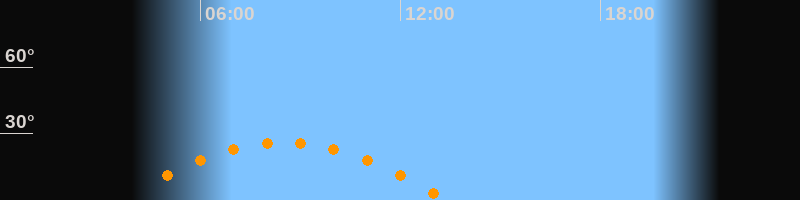 Daten und Fakten: NGC6822 (IC 4895, PGC 63616) Rektaszension 19h 44m 56s Deklination -14° 47' 21'' Helligkeit 8,7 mag (14,4 mag/arcmin^2) Scheinbare Ausdehnung 15,5' x 13,5' Entfernung ca. 1,6 Mio ly Ausdehnung 6000 ly Sichtbarkeit in Zwickau 28.03.2032 Aufgang 03:33 Uhr im Osten (αAz = 110,4°) Höchster Stand (Kulmination) 08:30 Uhr (h = 26,1°) Untergang 13:26 Uhr im Westen (αAz = 249,6°) Standort: Zwickau, Algorithmen siehe Credits