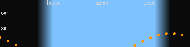 Daten und Fakten: NGC6822 (IC 4895, PGC 63616) Rektaszension 19h 44m 56s Deklination -14° 47' 21'' Helligkeit 8,7 mag (14,4 mag/arcmin^2) Scheinbare Ausdehnung 15,5' x 13,5' Entfernung ca. 1,6 Mio ly Ausdehnung 6000 ly Sichtbarkeit in Zwickau 11.09.2032 Aufgang 16:33 Uhr im Osten (αAz = 110,4°) Höchster Stand (Kulmination) 21:29 Uhr (h = 26,1°) Untergang 02:29 Uhr im Westen (αAz = 249,6°) Standort: Zwickau, Algorithmen siehe Credits