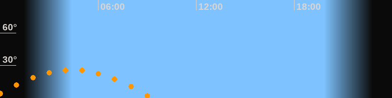 Daten und Fakten: NGC6822 (IC 4895, PGC 63616) Rektaszension 19h 44m 56s Deklination -14° 47' 21'' Helligkeit 8,7 mag (14,4 mag/arcmin^2) Scheinbare Ausdehnung 15,5' x 13,5' Entfernung ca. 1,6 Mio ly Ausdehnung 6000 ly Sichtbarkeit in Zwickau 15.05.2039 Aufgang 23:23 Uhr im Osten (αAz = 110,4°) Höchster Stand (Kulmination) 04:24 Uhr (h = 26,1°) Untergang 09:20 Uhr im Westen (αAz = 249,6°) Standort: Zwickau, Algorithmen siehe Credits