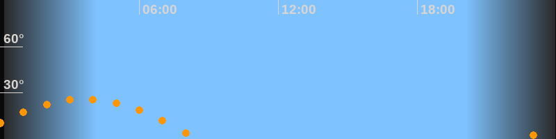 Daten und Fakten: NGC6822 (IC 4895, PGC 63616) Rektaszension 19h 44m 56s Deklination -14° 47' 21'' Helligkeit 8,7 mag (14,4 mag/arcmin^2) Scheinbare Ausdehnung 15,5' x 13,5' Entfernung ca. 1,6 Mio ly Ausdehnung 6000 ly Sichtbarkeit in Zwickau 27.05.2039 Aufgang 22:36 Uhr im Osten (αAz = 110,4°) Höchster Stand (Kulmination) 03:36 Uhr (h = 26,1°) Untergang 08:33 Uhr im Westen (αAz = 249,6°) Standort: Zwickau, Algorithmen siehe Credits