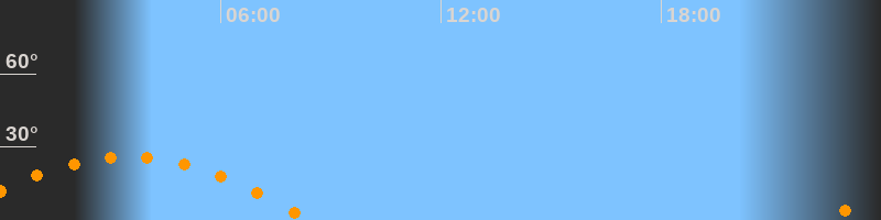 Daten und Fakten: NGC6822 (IC 4895, PGC 63616) Rektaszension 19h 44m 56s Deklination -14° 47' 21'' Helligkeit 8,7 mag (14,4 mag/arcmin^2) Scheinbare Ausdehnung 15,5' x 13,5' Entfernung ca. 1,6 Mio ly Ausdehnung 6000 ly Sichtbarkeit in Zwickau 29.05.2039 Aufgang 22:28 Uhr im Osten (αAz = 110,4°) Höchster Stand (Kulmination) 03:28 Uhr (h = 26,1°) Untergang 08:25 Uhr im Westen (αAz = 249,6°) Standort: Zwickau, Algorithmen siehe Credits
