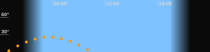 Daten und Fakten: NGC6822 (IC 4895, PGC 63616) Rektaszension 19h 44m 56s Deklination -14° 47' 21'' Helligkeit 8,7 mag (14,4 mag/arcmin^2) Scheinbare Ausdehnung 15,5' x 13,5' Entfernung ca. 1,6 Mio ly Ausdehnung 6000 ly Sichtbarkeit in Zwickau 26.04.2040 Aufgang 00:35 Uhr im Osten (αAz = 110,4°) Höchster Stand (Kulmination) 05:35 Uhr (h = 26,1°) Untergang 10:32 Uhr im Westen (αAz = 249,6°) Standort: Zwickau, Algorithmen siehe Credits