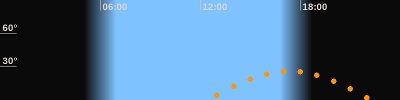 Daten und Fakten: NGC6822 (IC 4895, PGC 63616) Rektaszension 19h 44m 56s Deklination -14° 47' 21'' Helligkeit 8,7 mag (14,4 mag/arcmin^2) Scheinbare Ausdehnung 15,5' x 13,5' Entfernung ca. 1,6 Mio ly Ausdehnung 6000 ly Sichtbarkeit in Zwickau 29.10.2041 Aufgang 12:25 Uhr im Osten (αAz = 110,4°) Höchster Stand (Kulmination) 17:21 Uhr (h = 26,1°) Untergang 22:17 Uhr im Westen (αAz = 249,6°) Standort: Zwickau, Algorithmen siehe Credits