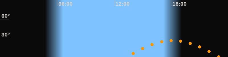 Daten und Fakten: NGC6822 (IC 4895, PGC 63616) Rektaszension 19h 44m 56s Deklination -14° 47' 21'' Helligkeit 8,7 mag (14,4 mag/arcmin^2) Scheinbare Ausdehnung 15,5' x 13,5' Entfernung ca. 1,6 Mio ly Ausdehnung 6000 ly Sichtbarkeit in Zwickau 16.10.2044 Aufgang 13:15 Uhr im Osten (αAz = 110,4°) Höchster Stand (Kulmination) 18:11 Uhr (h = 26,1°) Untergang 23:07 Uhr im Westen (αAz = 249,6°) Standort: Zwickau, Algorithmen siehe Credits