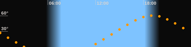 | Höchster Stand (Kulmination) | 19:08 Uhr (h = 60,5°) |