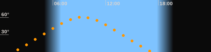 | Höchster Stand (Kulmination) | 09:21 Uhr (h = 60,5°) |