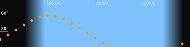 | Höchster Stand (Kulmination) | 06:10 Uhr (h = 60,5°) |