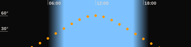 | Höchster Stand (Kulmination) | 11:56 Uhr (h = 60,5°) |