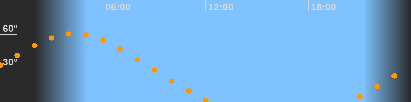 | Untergang | 12:14 Uhr im Nordwesten (αAz = 305,7°) |