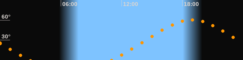 | Höchster Stand (Kulmination) | 18:55 Uhr (h = 60,5°) |