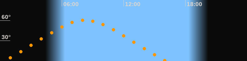 | Höchster Stand (Kulmination) | 08:14 Uhr (h = 60,5°) |