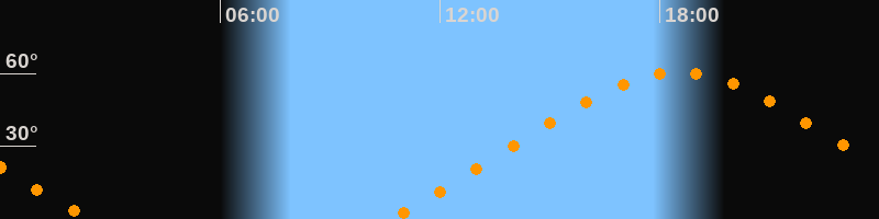 | Höchster Stand (Kulmination) | 18:30 Uhr (h = 60,5°) |
