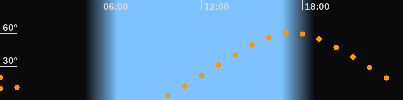 | Höchster Stand (Kulmination) | 17:23 Uhr (h = 60,5°) |