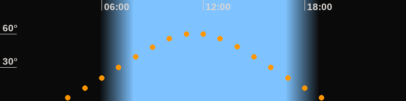 | Höchster Stand (Kulmination) | 11:30 Uhr (h = 60,5°) |
