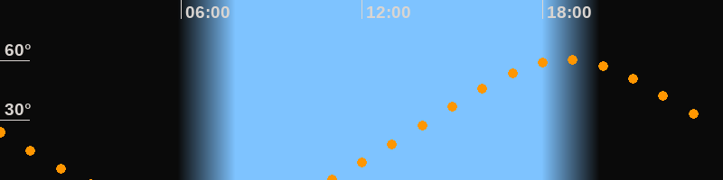 | Höchster Stand (Kulmination) | 18:48 Uhr (h = 60,5°) |