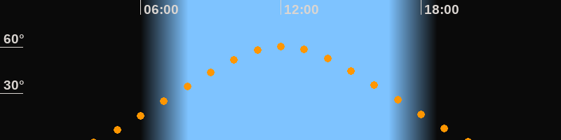 | Höchster Stand (Kulmination) | 12:02 Uhr (h = 60,5°) |