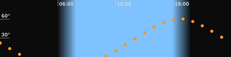 | Höchster Stand (Kulmination) | 18:37 Uhr (h = 60,5°) |