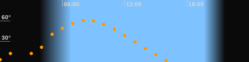 | Höchster Stand (Kulmination) | 08:24 Uhr (h = 60,5°) |