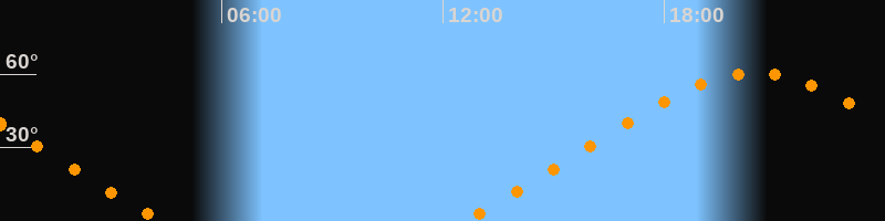 | Aufgang | 12:31 Uhr im Nordosten (αAz = 54,3°) |