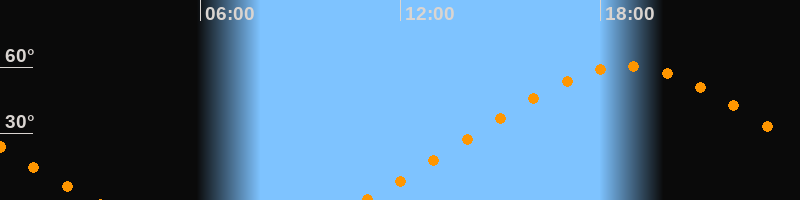 | Höchster Stand (Kulmination) | 18:49 Uhr (h = 60,5°) |