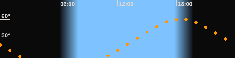 | Höchster Stand (Kulmination) | 18:25 Uhr (h = 60,5°) |