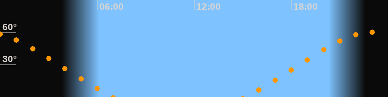 | Untergang | 07:02 Uhr im Nordwesten (αAz = 305,7°) |