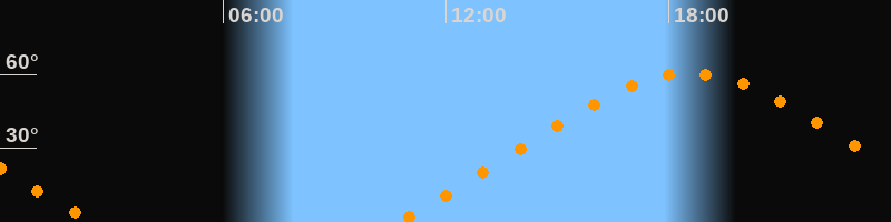 | Höchster Stand (Kulmination) | 18:34 Uhr (h = 60,5°) |