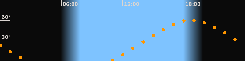 | Höchster Stand (Kulmination) | 18:43 Uhr (h = 60,5°) |