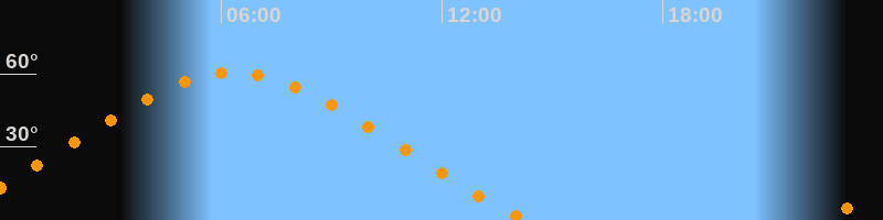 | Höchster Stand (Kulmination) | 06:20 Uhr (h = 60,5°) |