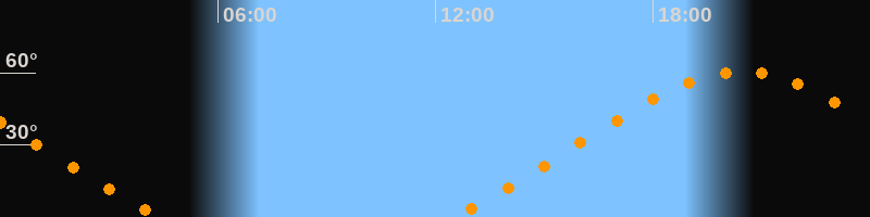 | Aufgang | 12:30 Uhr im Nordosten (αAz = 54,3°) |