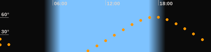 Höchster Stand (Kulmination)17:36 Uhr (h = 60,5°)