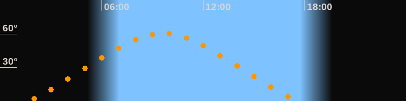 | Höchster Stand (Kulmination) | 09:36 Uhr (h = 60,5°) |