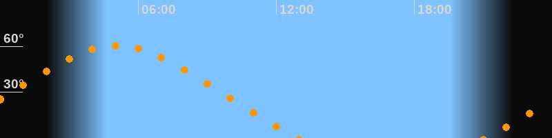 | Höchster Stand (Kulmination) | 05:02 Uhr (h = 60,5°) |