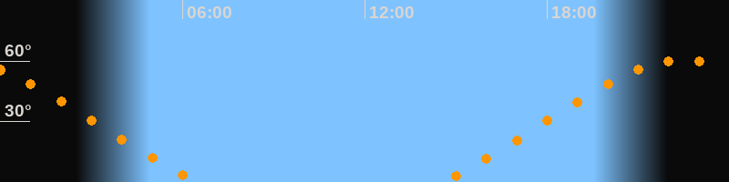 | Höchster Stand (Kulmination) | 22:29 Uhr (h = 60,5°) |