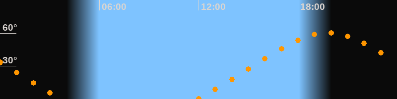 | Höchster Stand (Kulmination) | 19:48 Uhr (h = 60,5°) |