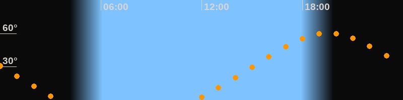 Höchster Stand (Kulmination)19:32 Uhr (h = 60,5°)