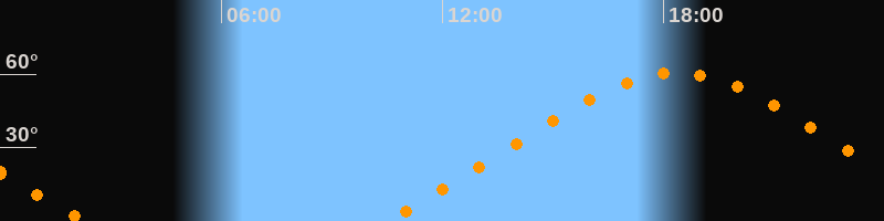 | Höchster Stand (Kulmination) | 18:21 Uhr (h = 60,5°) |