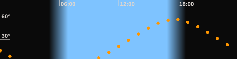 | Höchster Stand (Kulmination) | 17:38 Uhr (h = 60,5°) |