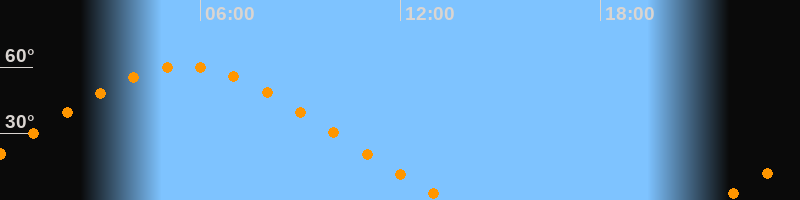 Höchster Stand (Kulmination)05:30 Uhr (h = 60,5°)