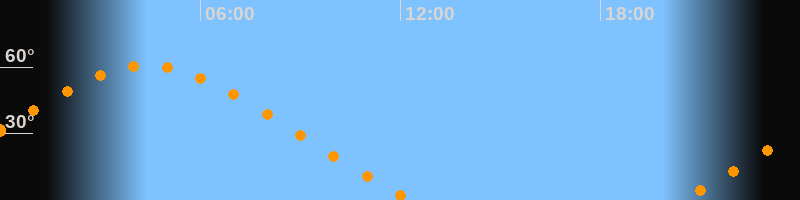 | Untergang | 12:20 Uhr im Nordwesten (αAz = 305,7°) |
